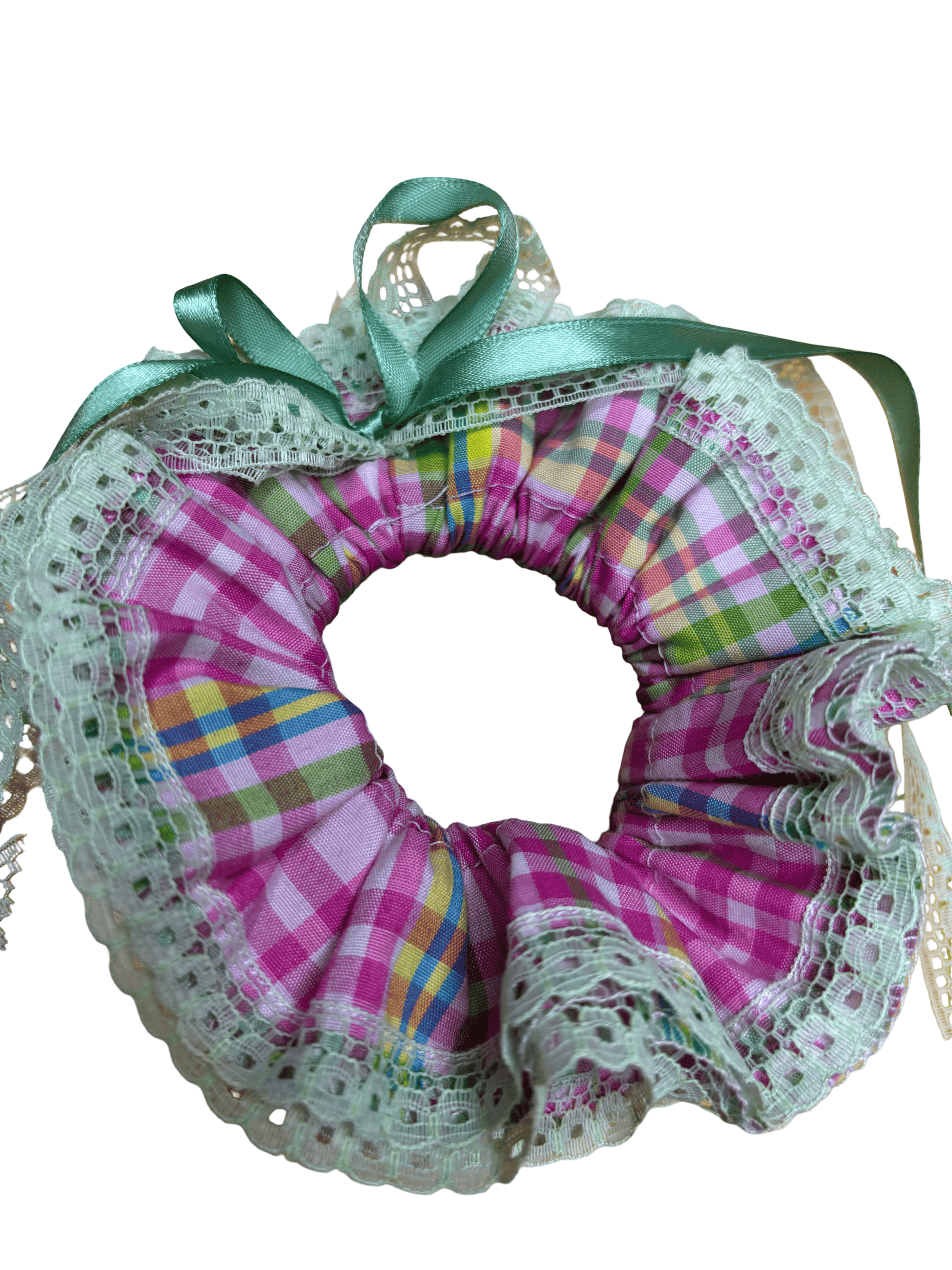 Maak je look af met deze super leuke Scrunchie, gemaakt van rest stof, kant en lint.